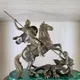 Этот эксклюзивный подарок идеально подойдет для тех, кто ценит не только красоту, но и историю. В основу работы положен латунный корпус, украшенный рельефной сценой битвы, изображающей Святого Георгия, сражающегося с драконом. Детализированное исполнение и благородный оттенок металла подчеркивают статусность и престиж данного подарка.